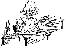 heels as they went out the door. The most popular source of release at all of the studios came in a steady flow of cartoon sketches inspired by any subject of the moment. A worker with a car problem or an unusual hat might set off a stream of hilariously drawn responses. Department heads accepted these small breaks in the daily schedule, but the pressure to keep up production was always there. This kept the artists at their desks, since roaming around the studio was frowned on. Still, couples met, planned parties and picnics at the beach, got married, had babies and hoped to keep their jobs. Lurking below the surface were pressures and frustrations about salaries, creativity, disagreements with the management, lack of amenities and poor working conditions. Animators in New York worked in darkened rooms, the lights from the drawing tables falling on their engrossed faces, sweaty in August, in years before air conditioning became commonplace. (Excerpted from Chapter 3 of Animation: the Whole Story.)